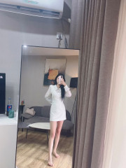 周五的晚上不能辜负小周末良辰美景,正好这个姑娘发了个朋友圈说现在有空,之前也没去过,就打算尝尝鲜。根据定位定位打车前往。路上先看了看照片过过眼瘾。上楼小心翼翼的敲门,姑娘把门拉开一条缝把小狼拉了进去,有种偷情的感觉。 进门打量一下,首先这个姑娘绝对的人照无差,五官很精致,皮肤白皙剔透,一张欲求不满的风韵少妇的模样,看着就很有蹂躏征服的欲望,很对小狼的胃口。 小狼欲火焚身也顾不得什么情调了,也不要她陪浴了,自己简单冲洗一下进了卧室,让她穿了件情趣内衣,直接按倒在床上一阵狂吻。一路吻到姑娘的小穴,已经是淫潮泛滥,我把拽着她两条腿拖了过来,把她脑袋按在我的身下,小骚货口活可以,不停吞吐,时不时还舔下我的蛋蛋,差点直接交代在他嘴里。口了十分钟戴套上阵,小骚货好像对后入情有独钟,不过小狼还是把她翻面过来,一边狂吻一边猛烈抽插。两条美腿架在胳膊上不停翻飞,那情景不要太香艳,最后快射时把她拉起来面对面抱在一起交合,奶子紧紧贴着我,完全是情人般的体验。体力好的建议两发。