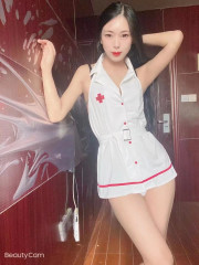 看了论坛帖子加了微信,离得远一直没去。难得开会在附近,约的晚上8点,交了50定金。地方不算难找,上楼进门第一眼觉得人和,身材和照片有点差距,但小姐姐很热情,先是一起洗澡,帮我关键部位都洗了2遍,然后一下含住,有些受不了。然后拉着走到个大镜子前,满墙的制服丝袜让我挑,选好后让我坐在椅子上,她跪在地上帮我口,边口边媚眼如丝的看着我,骚得不行。接着用她的双乳夹着我下面开始上下套弄,爽了几分钟,问我想不想舔bb。靠,就是奔着这个来的,我是重口味,上床躺倒调换位置,妹子下面毛刮的挺干净,樱唇也是很小,像个小花朵一样。边用手插进去边用舌头顶住花蕊,味道美滋滋。妹子在那边帮我口,而且是深喉,真的深,妹子都快搞吐了。爽了五六分钟,戴套上马,直接坐我身上,全自动,可能是我比较长,感觉一用力就能顶到底,顶的妹子娃娃乱叫。做了五六分钟,感觉快要发射了,赶紧换了我最喜欢的姿势:按住她双手举过头顶,架起双腿,用舌头封住她的小嘴,听着她若有若无的呻吟疯狂冲刺,爽歪歪!结束后一起去洗干净,又聊了会天,然后再付钱走人。总的来说还是很棒的,时间充裕的话可以多玩些花样,后面有机会再去刷一波。